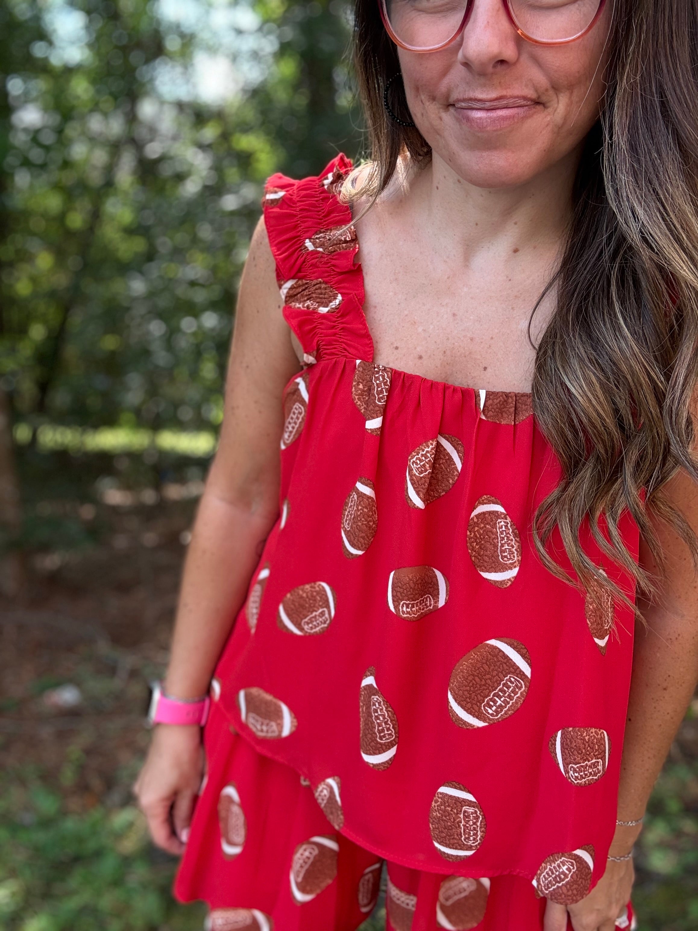 ♥️ Style Tip: Complete the look with the Kickoff Cutie Ruffle Tank for the cutest coordinating game-day set! Add sneakers or sandals for an effortless, sporty vibe.