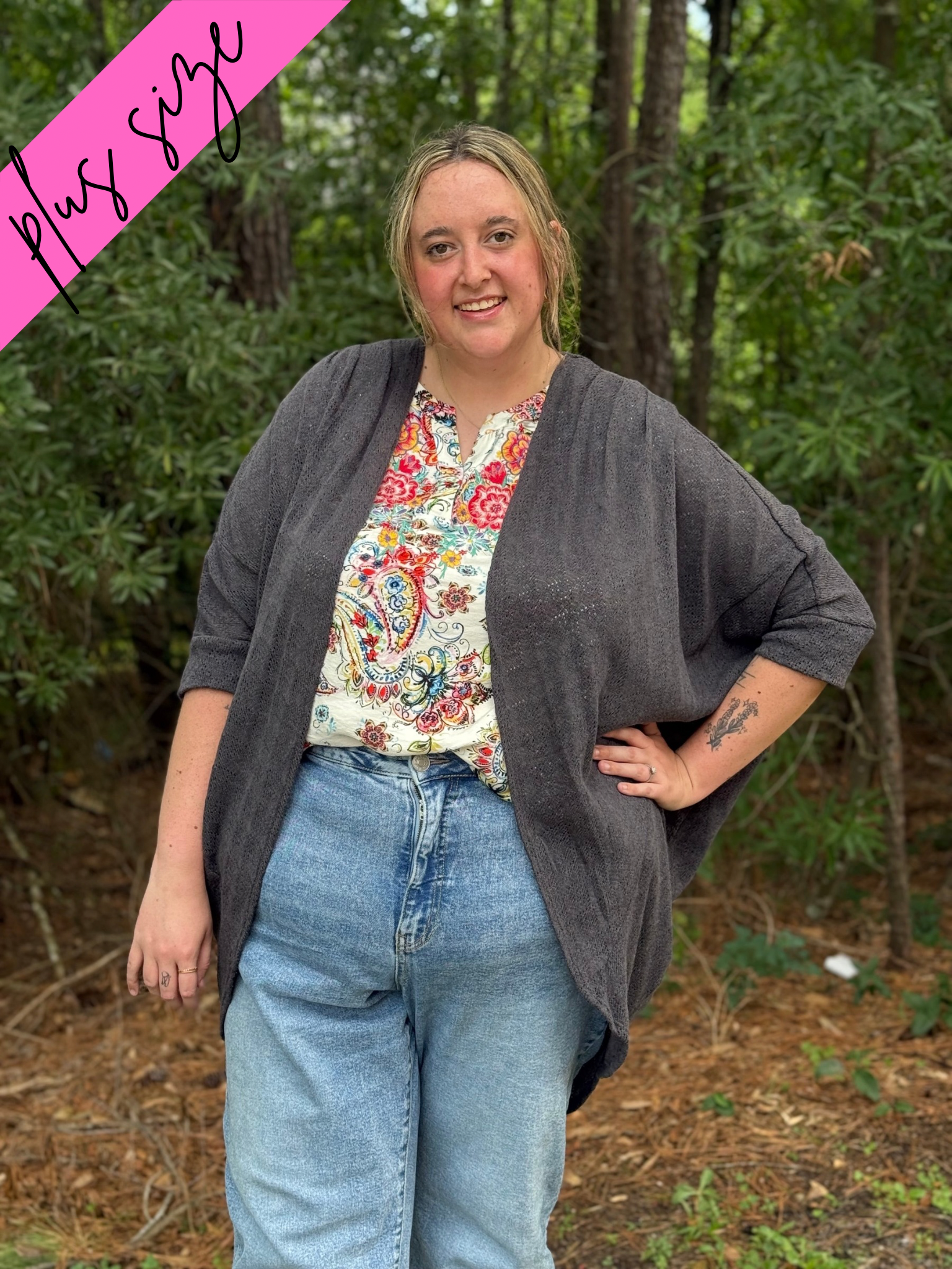Cozy up in style with our Plus Size Dolman Cardigan. This grey beauty is not only comfortable but also adds a touch of chic to any outfit. Perfect for the colder months, you'll want to live in this cardigan!