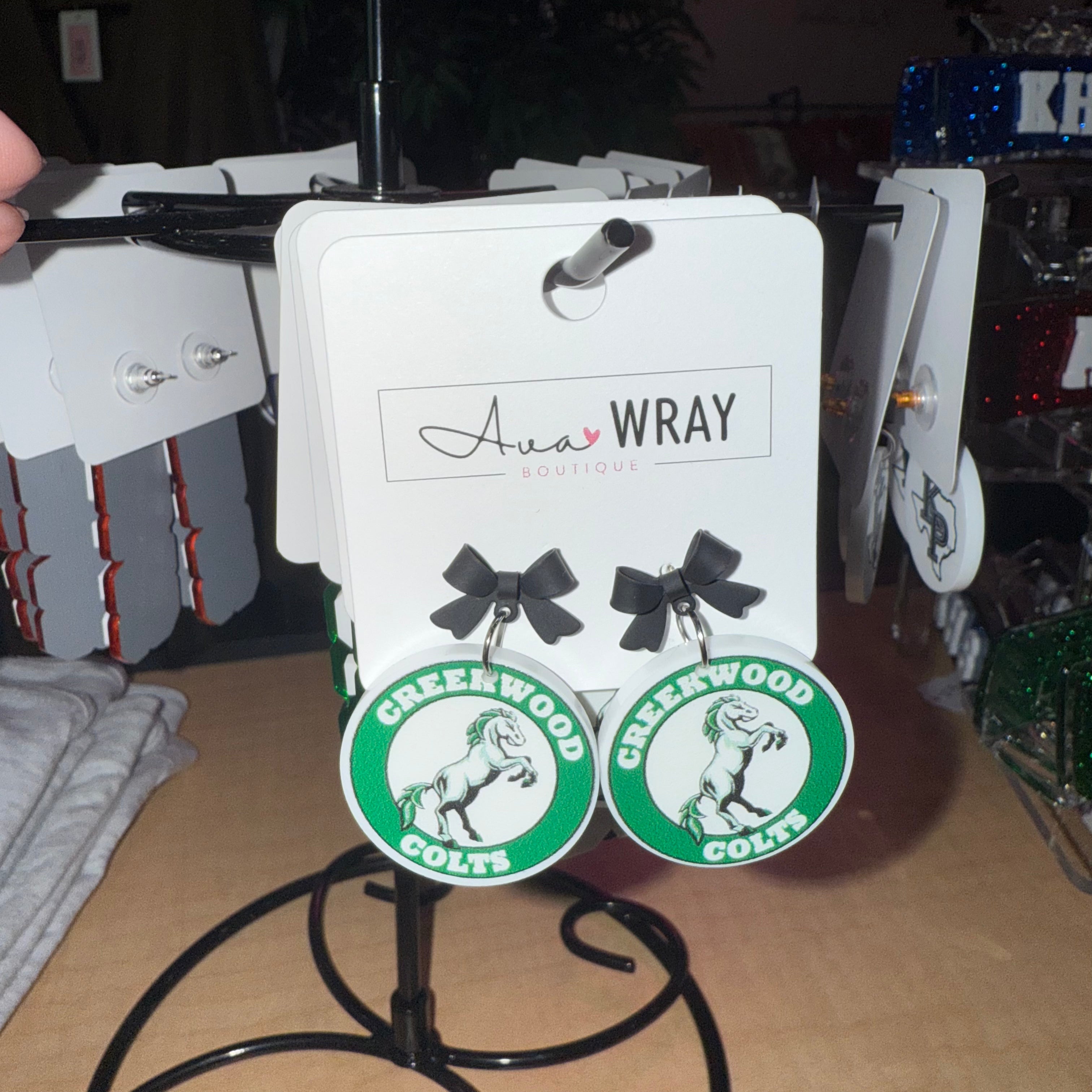 Show your Creekwood Middle School pride with these CMS Logo Cutie Earrings! Featuring an adorable mini gold bow paired with the school logo, they add a fun and charming touch to any outfit. Perfect for expressing school spirit in a playful, stylish way.