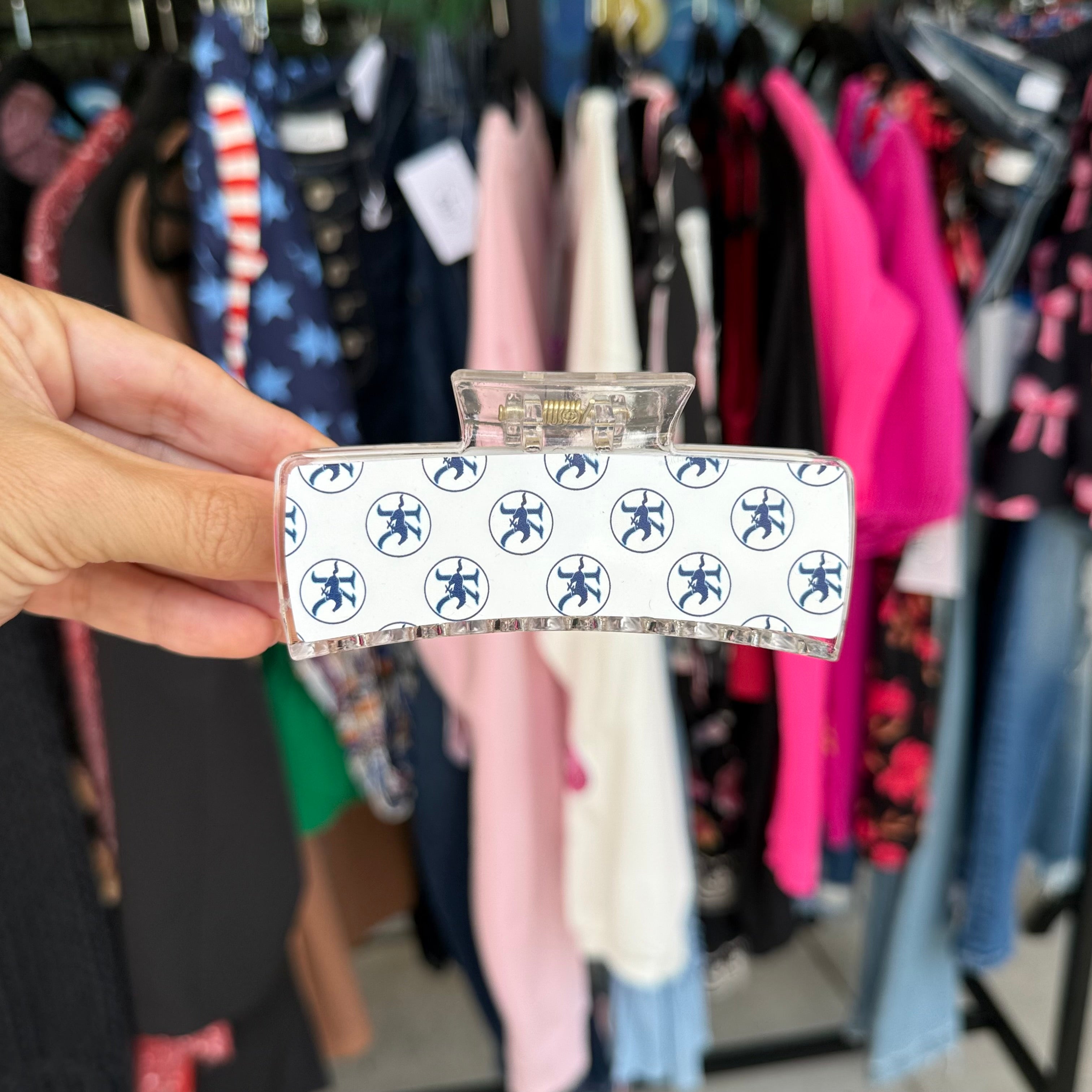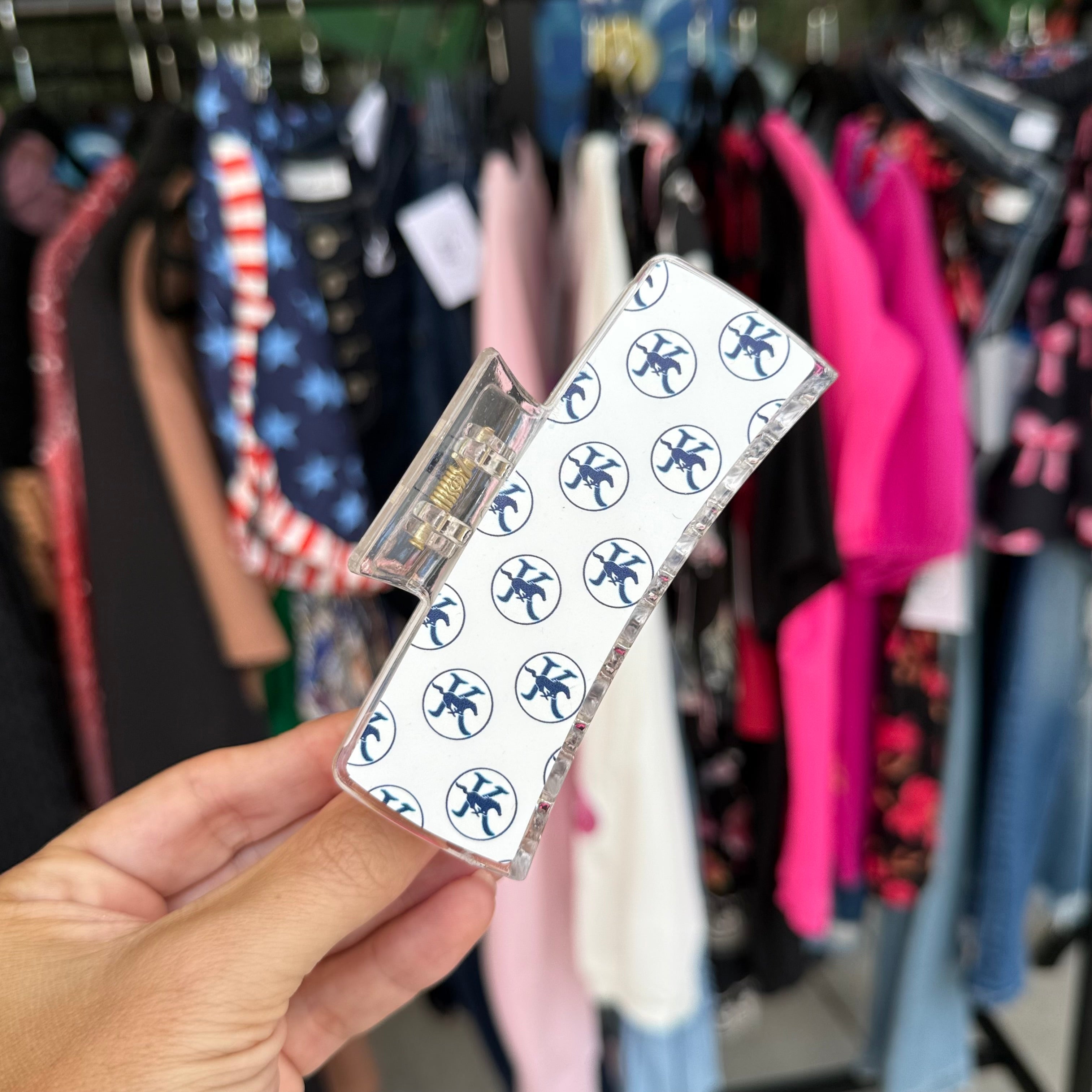 Add a playful touch to your hairstyle with the KHS Logo Hair Clip, available in two sizes! Perfect for showing off your Kingwood High School pride in your small town, this fun clip adds a stylish local flair to any look. Lightweight and easy to wear, it’s a cheerful way to celebrate your school spirit every day.