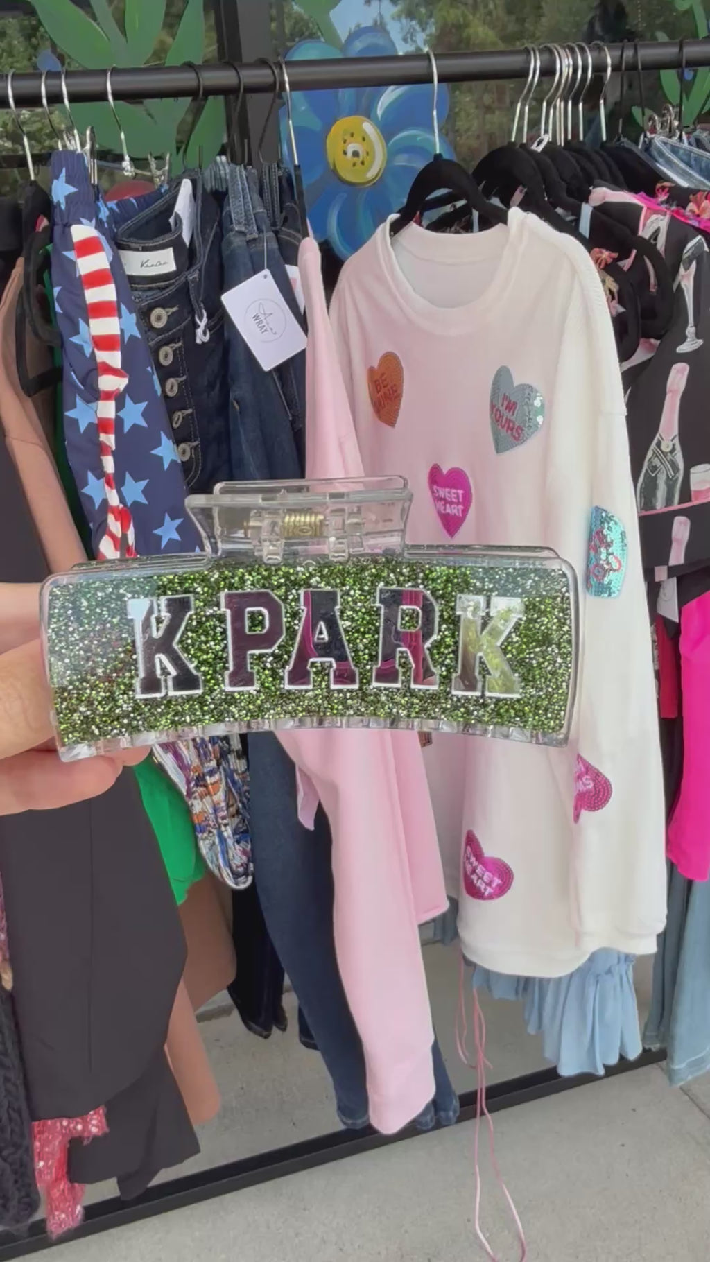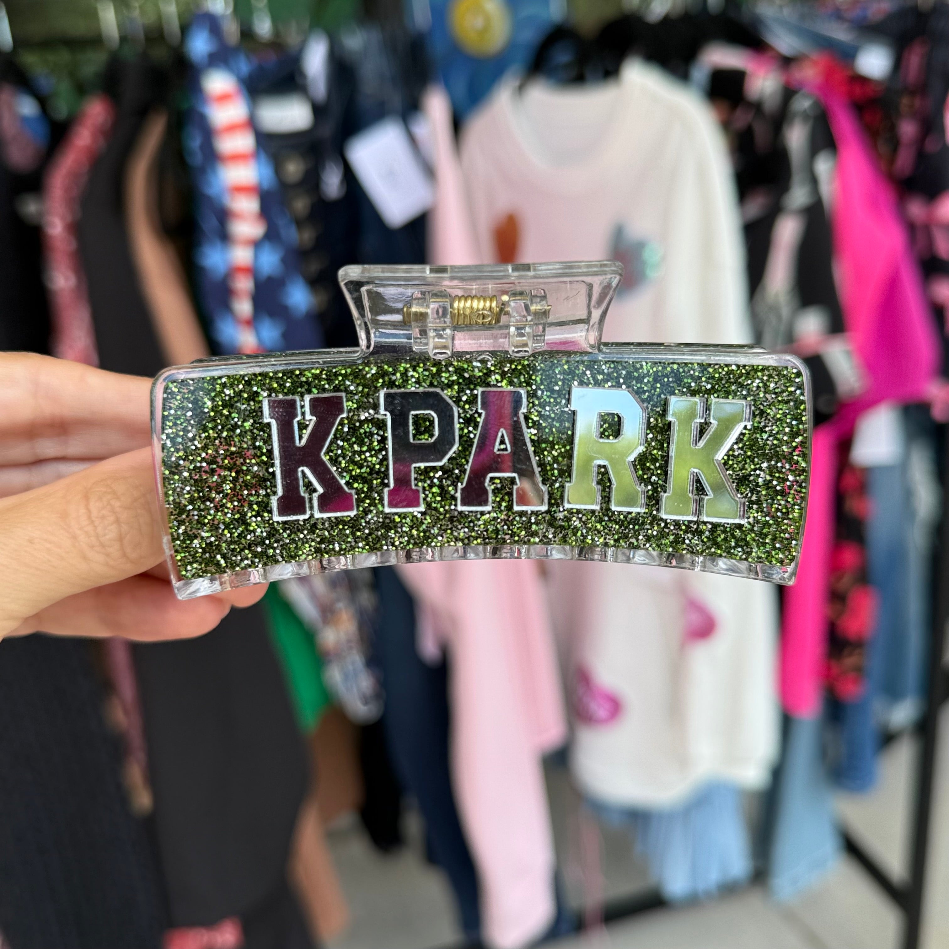 Add sparkle to your school spirit with the KPARK Glitter Hair Clip! Perfect for showing off your KPARK High School pride in your small town, this playful clip shines bright and adds a fun, local touch to any hairstyle. Lightweight and easy to wear, it’s a cheerful way to celebrate your school pride every day.