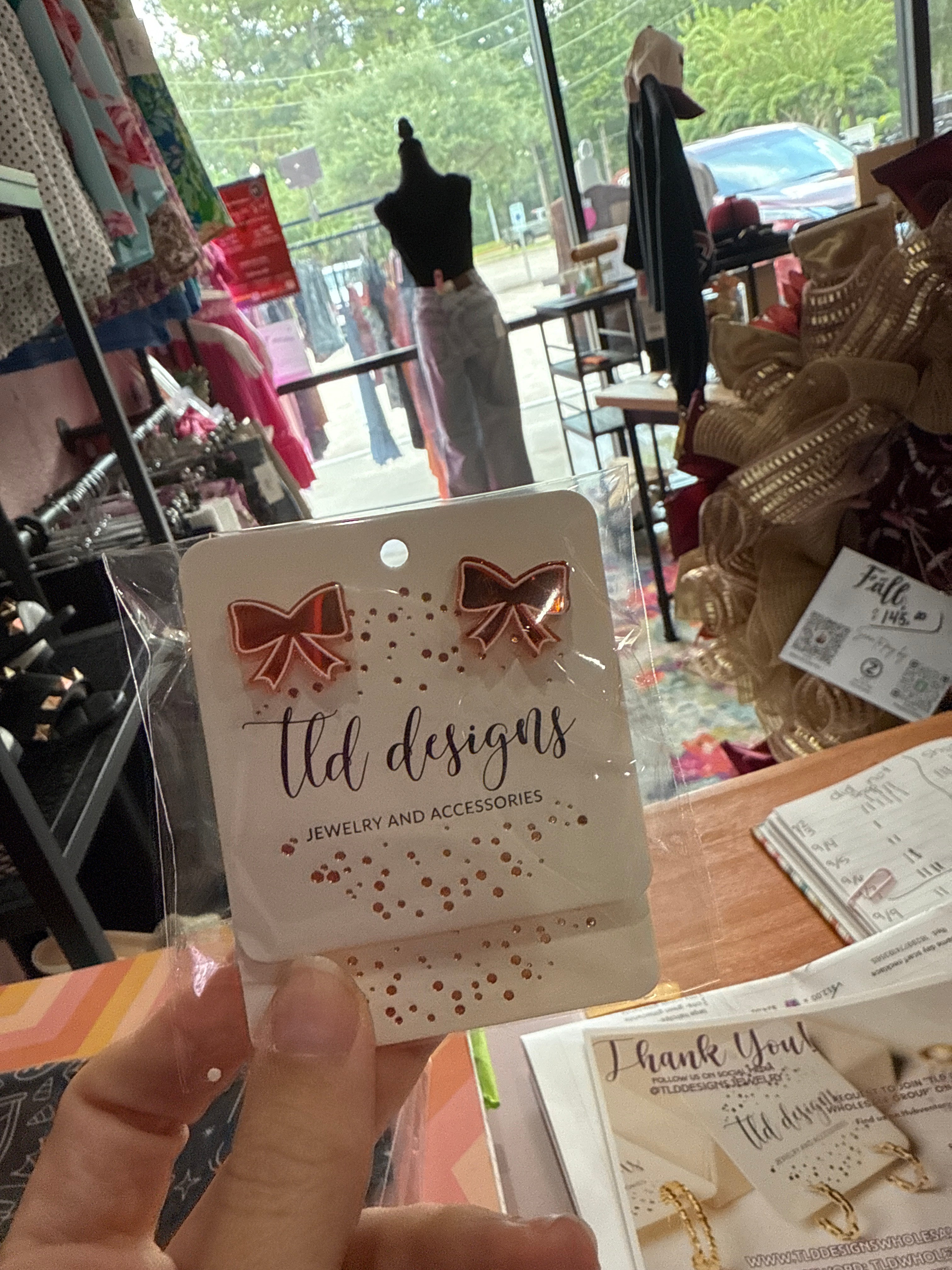 Celebrate your School Spirit with these playful Orange Acrylic Bow Earrings! Their vibrant orange color and charming bow design bring a fun, small-town vibe to any outfit. Lightweight and stylish, these earrings are the perfect way to show off your local pride with a cheerful touch.
