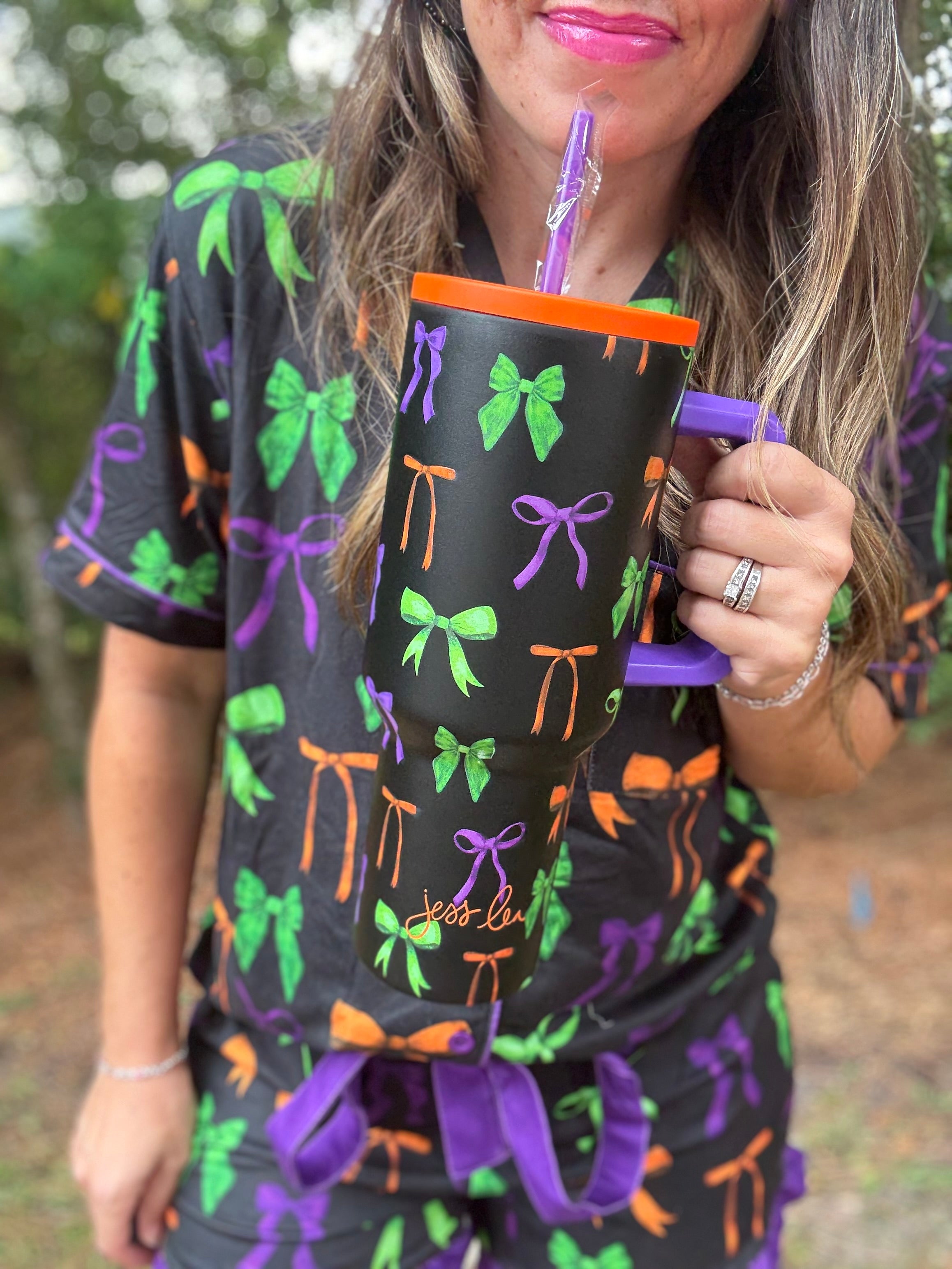 🖤Style Tip: Sip on our matching Bow Bewitched Tumbler while lounging in these beautiful pajamas!