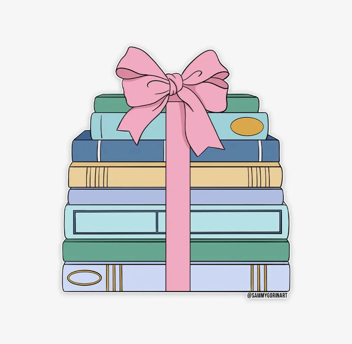 Add a dash of literary charm to your life with the Bow & Books Sticker! This delightful design features a stack of books topped with a pretty pink bow—perfect for jazzing up your notebook or giving your laptop a stylish upgrade. Who knew reading could be so fashionable?