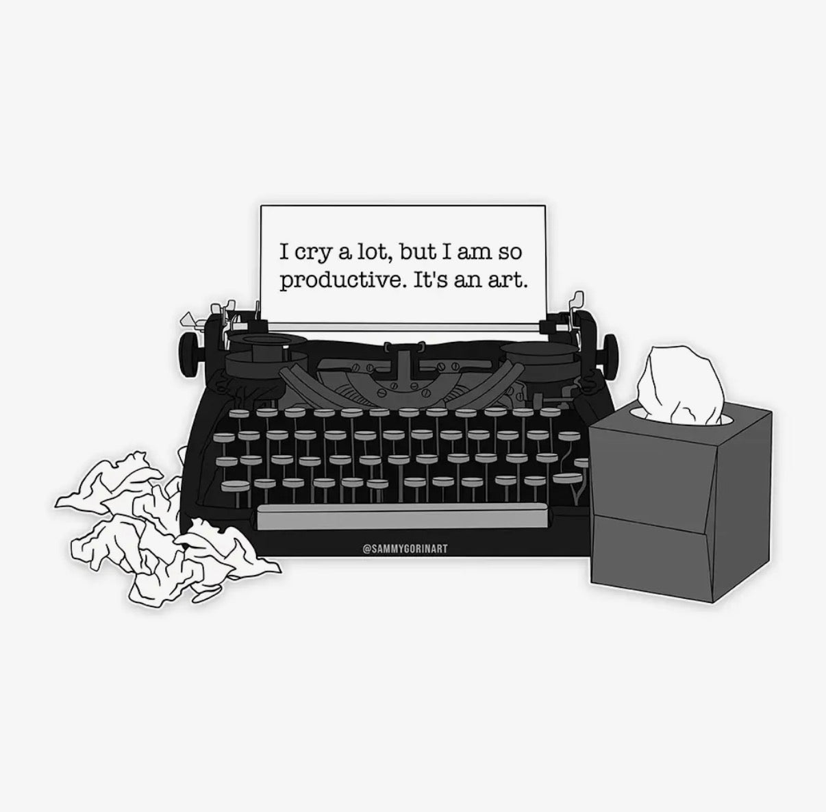 Get ready to wear your heart (and your typewriter) on your sleeve! The "I Cry A Lot Sticker" features a classic typewriter and a lyric that’s as relatable as your favorite sad song. Perfect for the emotional overachiever—because crying and productivity are just two sides of the same artistic coin!