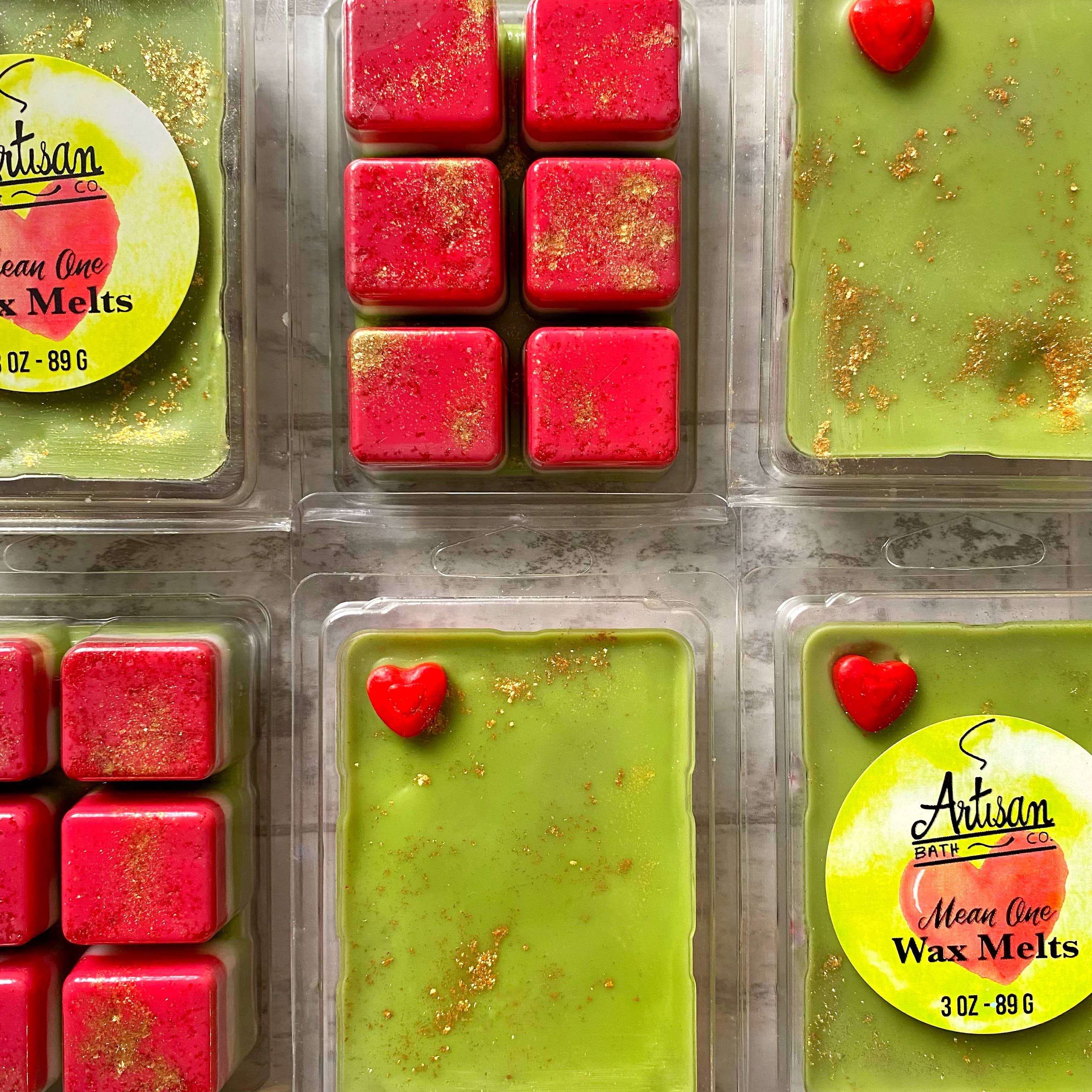 Our Mean One Wax Melts feature 6 individual melts with a combined weight of approximately 3oz made of a parasoy wax blend.